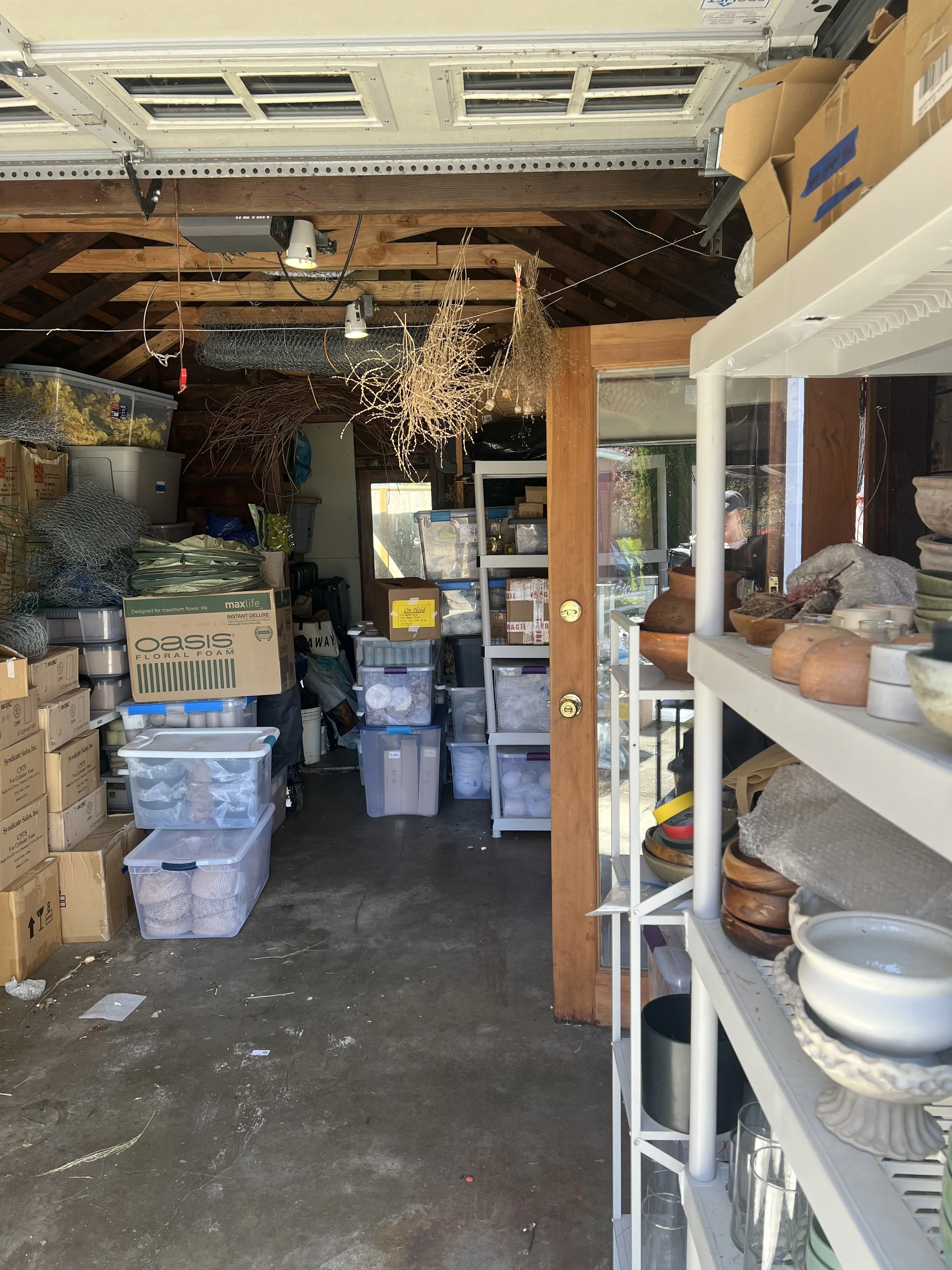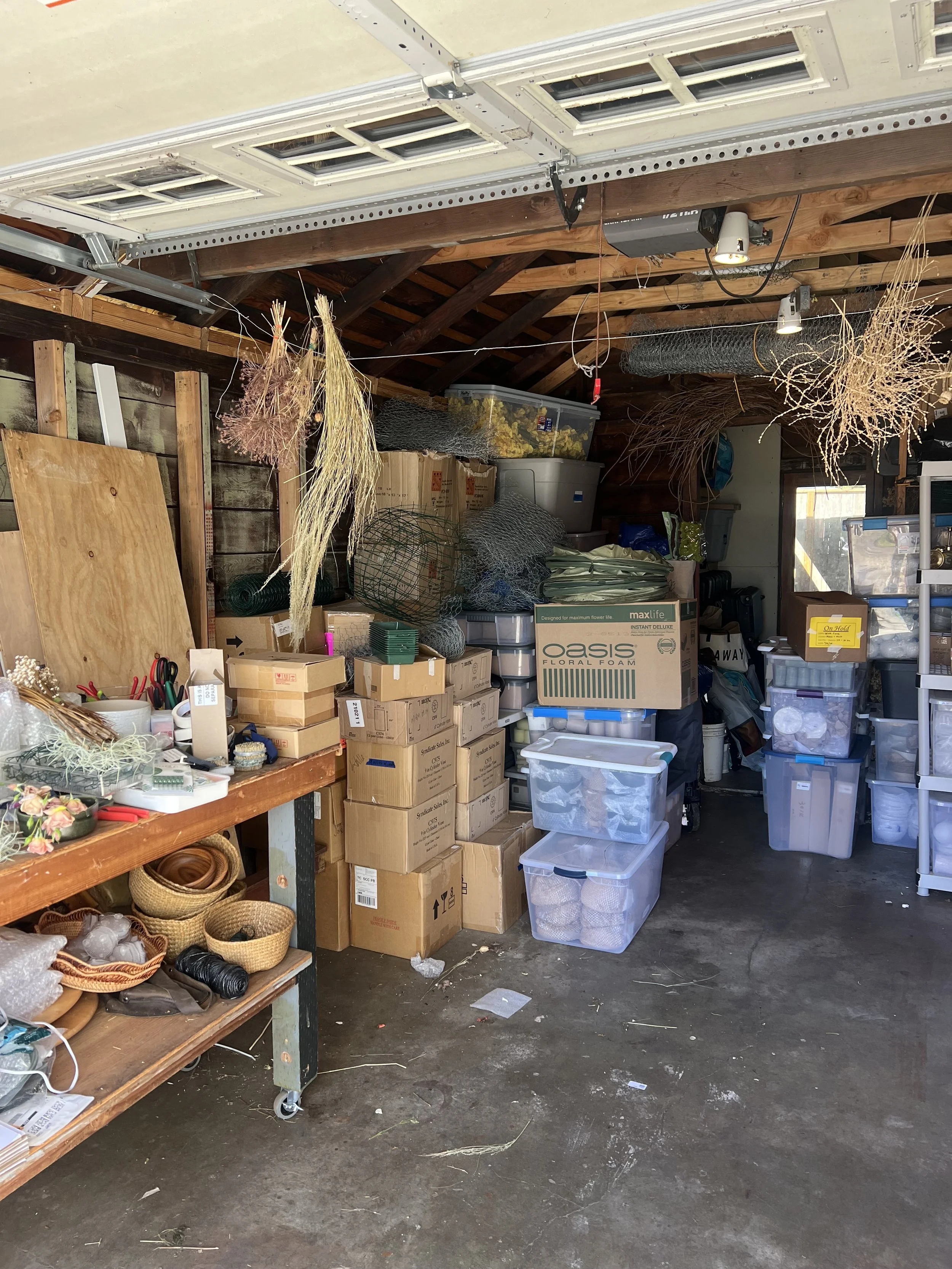 this small floral studio/ workspace took 27 hours to empty, organize, sell unwanted inventory, deep clean, and label everything